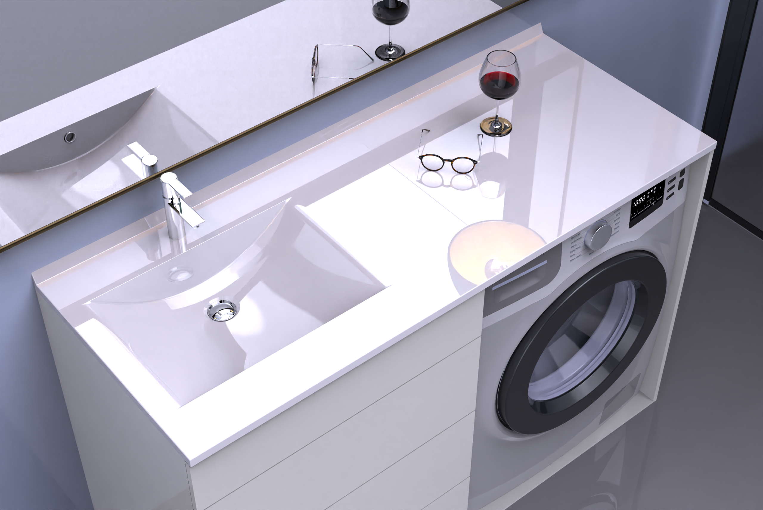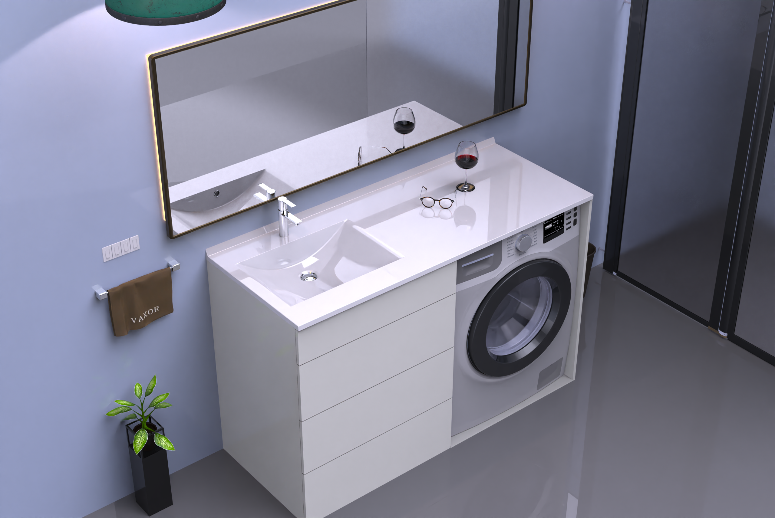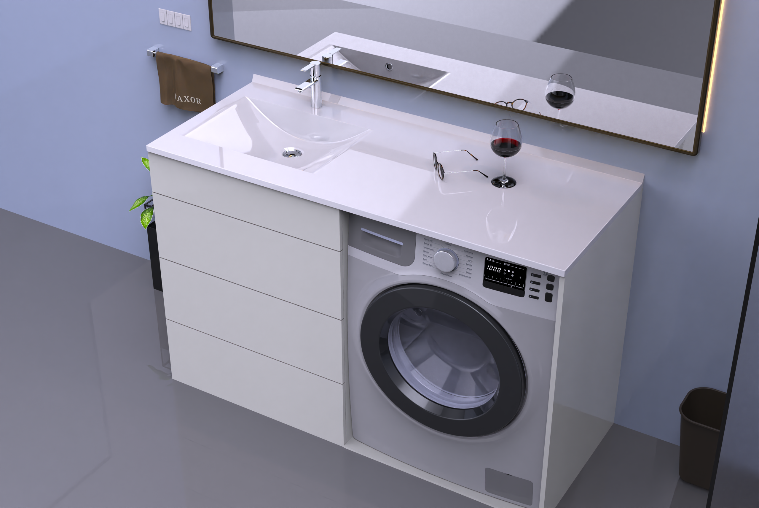 ➡ Funkcjonalna przestrzeń przechowywania – aż cztery zamykane komory oraz szuflada umożliwiają przechowywanie wszystkich niezbędnych kosmetyków, akcesoriów i środków czystości w uporządkowany sposób.